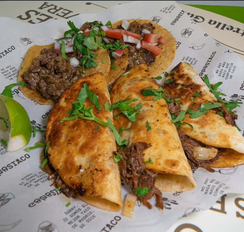 Aprovecha nuestra oferta especial de mediodía: tres tacos, una quesadilla y bebida por solo 10€. ¡Disponible de martes a domingo!